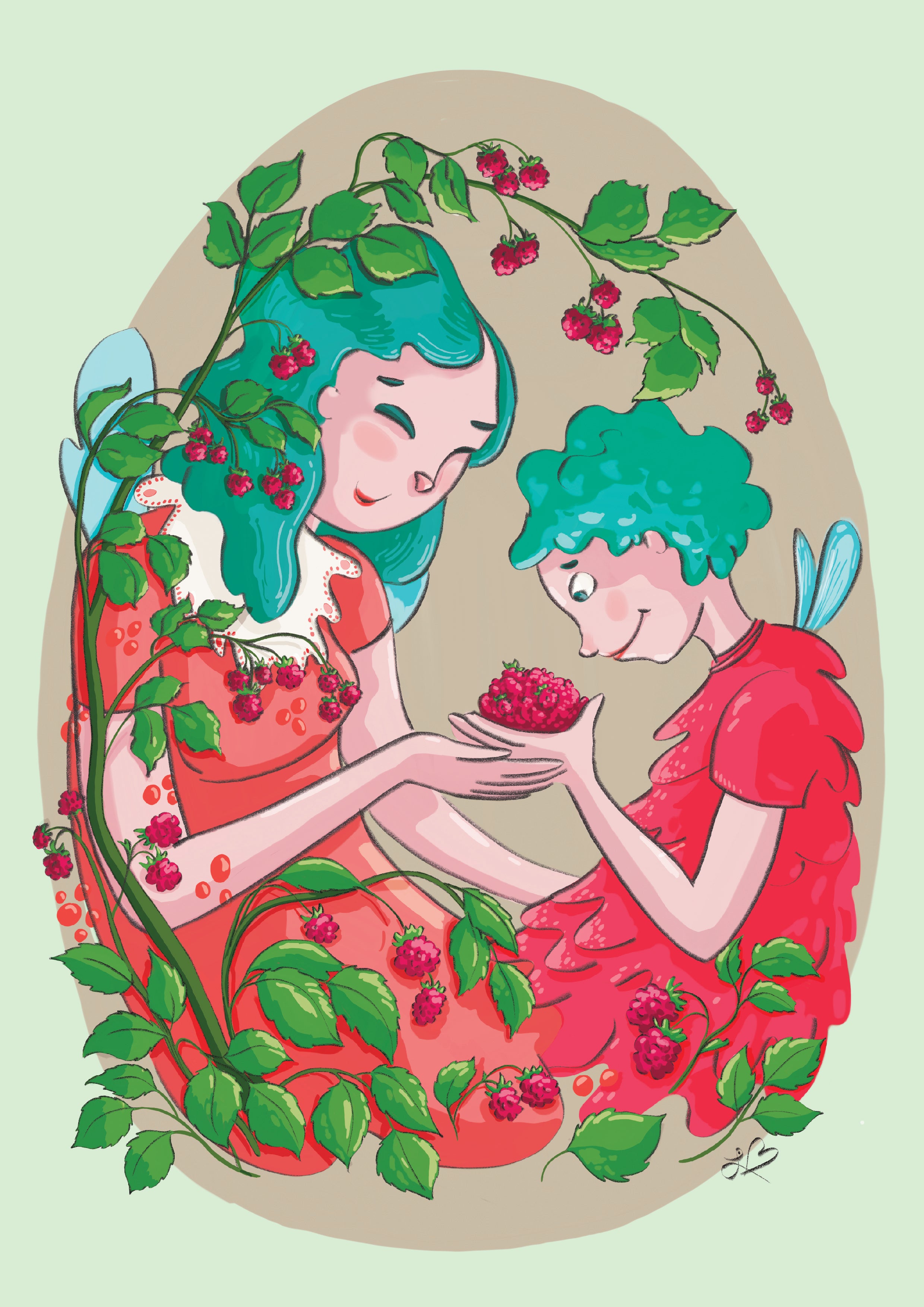 Pack of 10 Flat Postcards - Mother & Child Raspberry Illustration | Premium Paper & Foil Accents